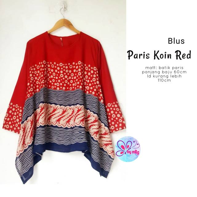 Name: Atasan Batik Wanita Blouse Kartini Koin Lapis Merah Hitam Navy Top Batik Solo