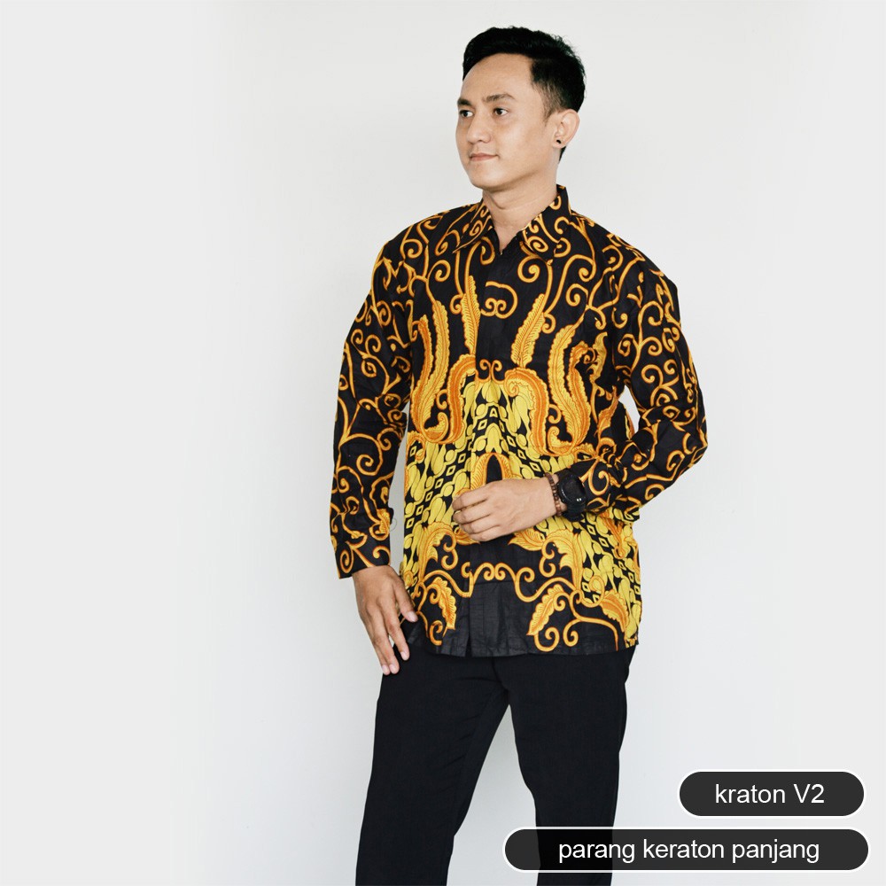 trolistore kemeja batik pria cowok lengan panjang motif parang keraton kraton