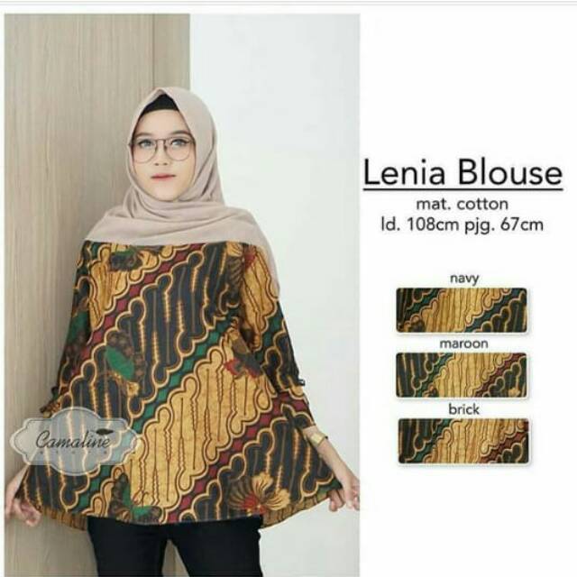 Name: Lenia Blouse Parang Kupu Lonceng Sogan Batik Puff Trompet Seragam Kerja Kantor Batik Genes