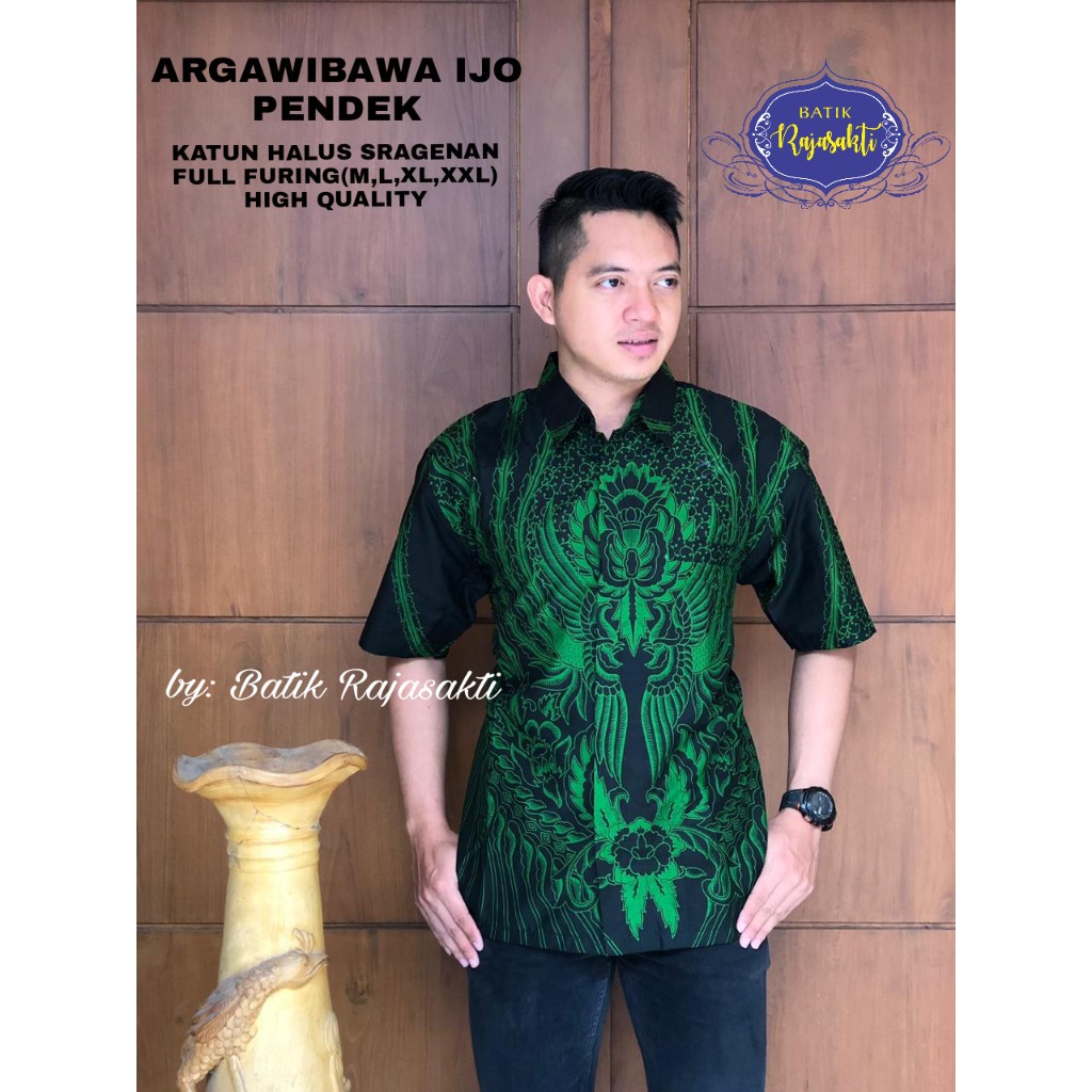Name: Argawibawa Ijo Batik Solo Kemeja Batik Pria Lengan Pendek Seragam Batik Modern Ori By Raja Sakti