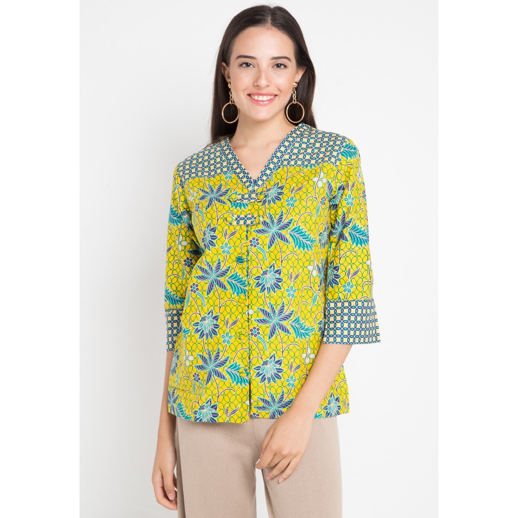 - Boxy blouse batik print detail motif bunga