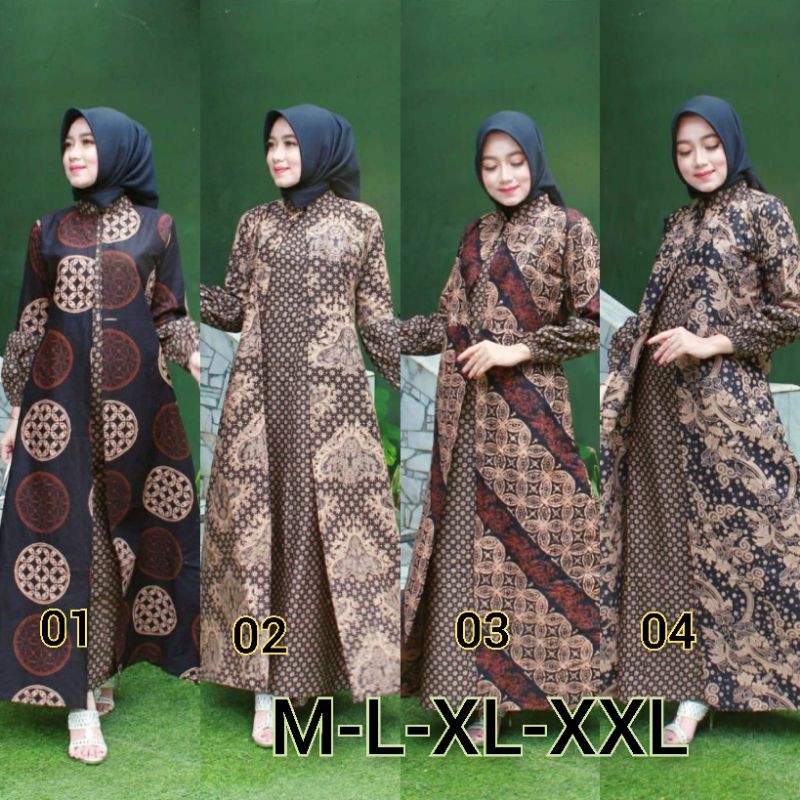 ✓Gamis Cardi Batik Kombinasi iner menyatu