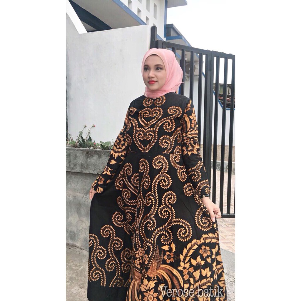 Name: Gamis Batik Premium (garansi Ukuran Pas Dengan Anda....!!!) Motif Merak Latar Hitam