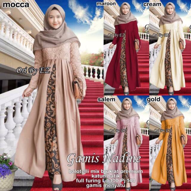 Name: Batik Gamis Brukat Nadine Kekinian Broklat Brokat Modern Seragam Kantor Pesta Kondangan