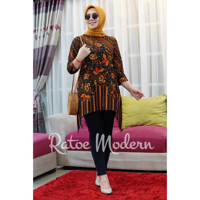 Name: Tunik Batik Ratoe Modern Kode 08 Runcing Samping. Bahan Katun Batik Zaitun Size S-xxl